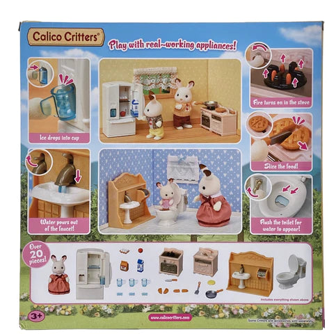 Calico Critters is a line of miniature animal figures, with homes, furniture and accessories. The animal figures are unique because they are made of a special flocked material that gives them an endearing quality. They were introduced in Japan in 1985 and are distributed worldwide. Calico Critters are sold as families, with Mothers and Fathers, sisters, brothers and babies. The homes and furniture are quite life-like are have incredible detail. The Critters live in the community of Calico Village. All the citizens in Calico Village have hobbies and jobs. The underlying theme is giving, friendship and happiness. Calico Critters are wholesome, never trendy.