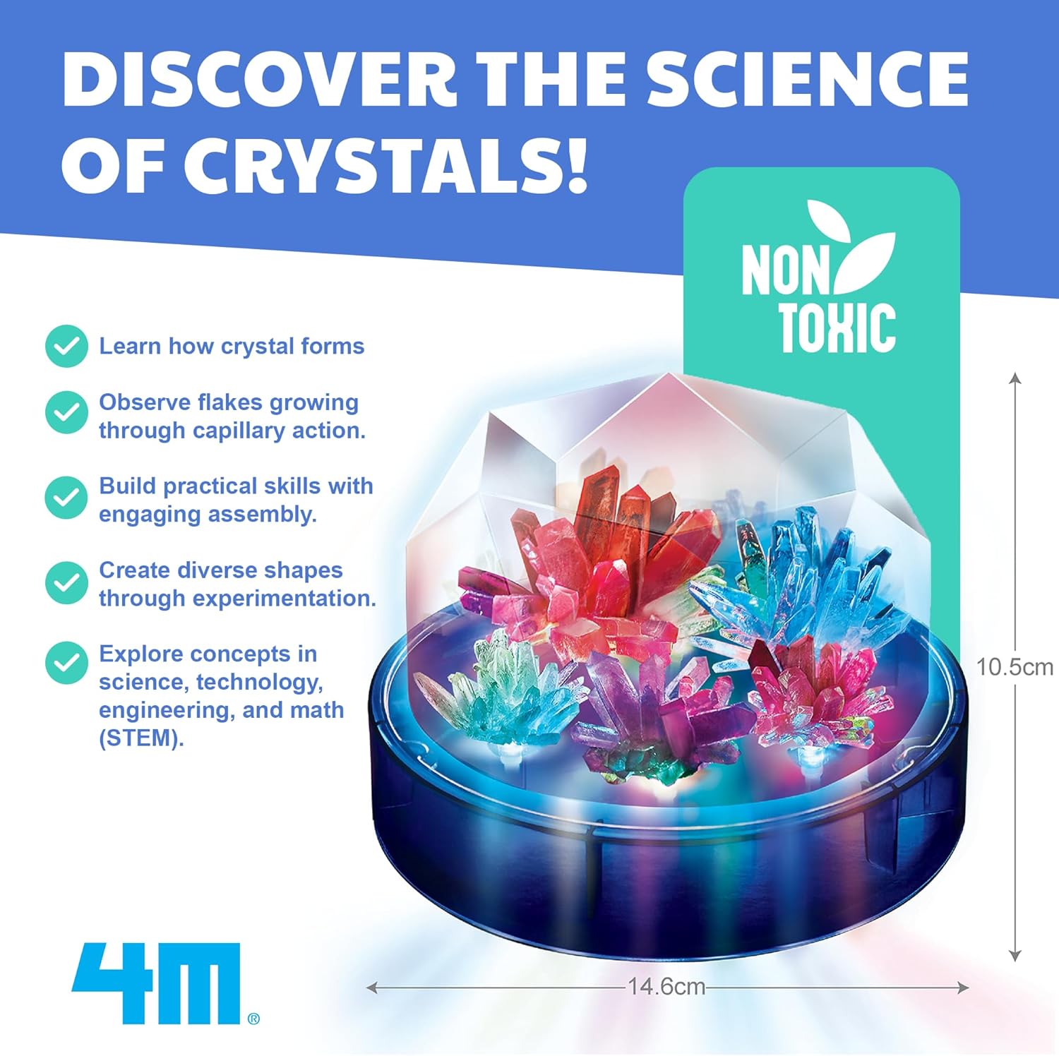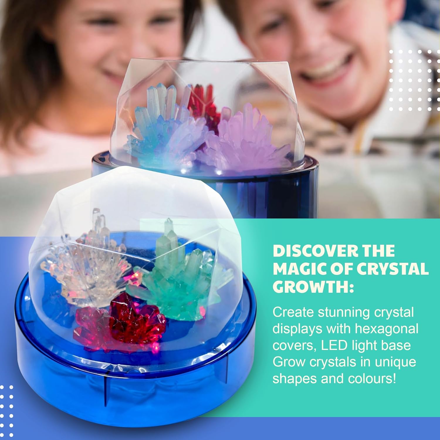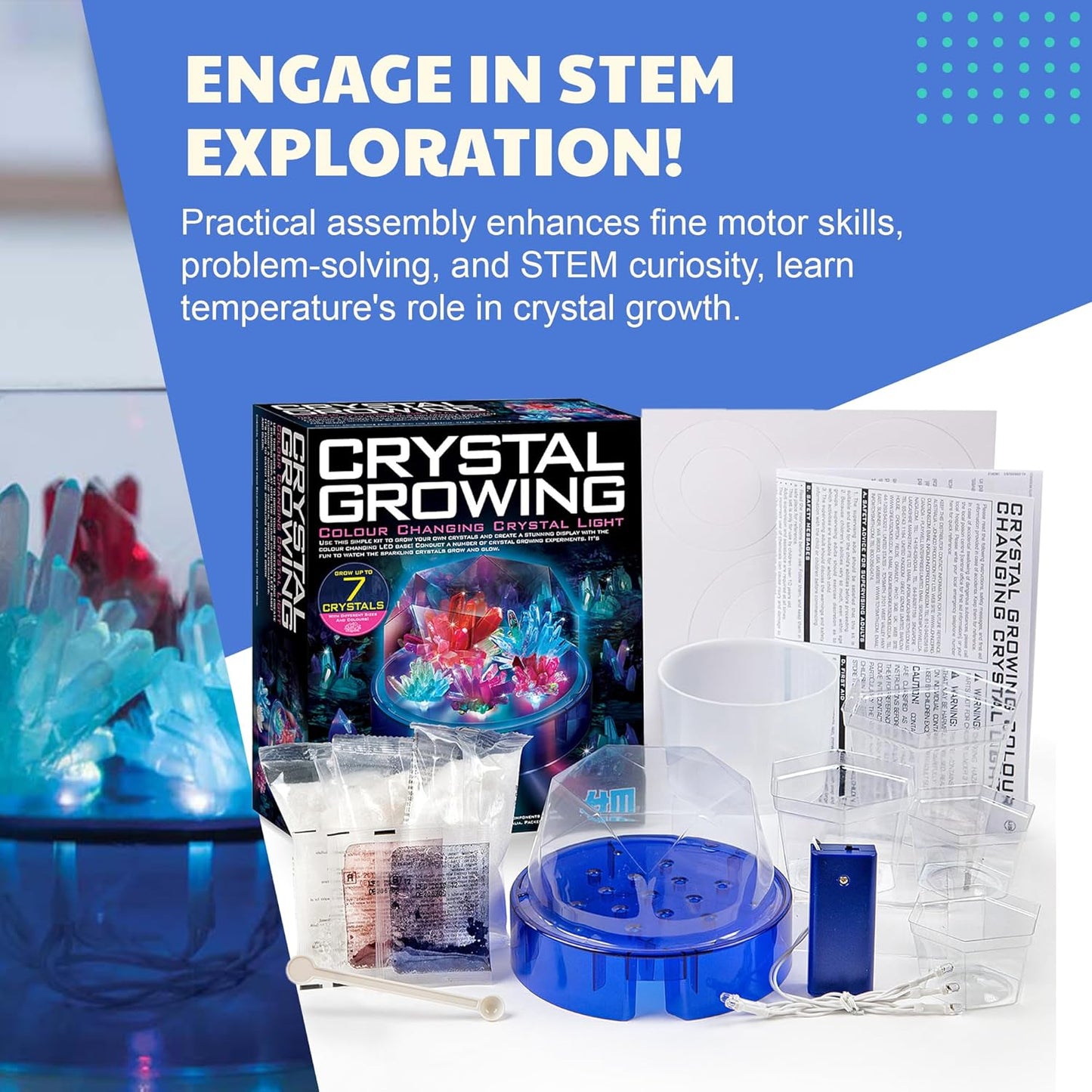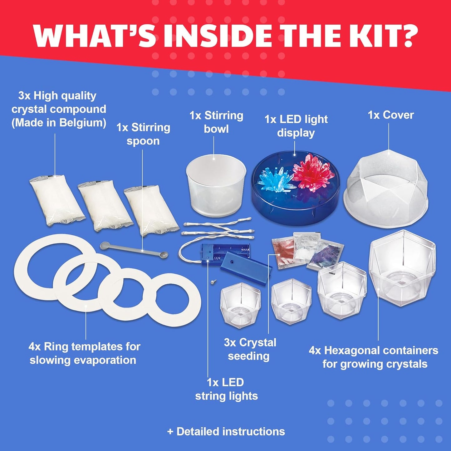 Grow crystals and display them on their own color-changing LED light base. Conduct 7 Crystal growing experiments. It's fun to watch the sparkling crystals grow in front of your eyes. Use this simple kit to grow your own crystals and create a stunning display with the LED base. Includes crystal growing medium, light display base and detailed instructions. Recommended for age 10 years and up. 2 AA batteries required (not included).