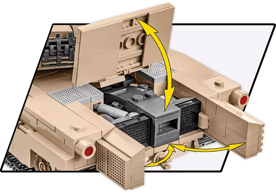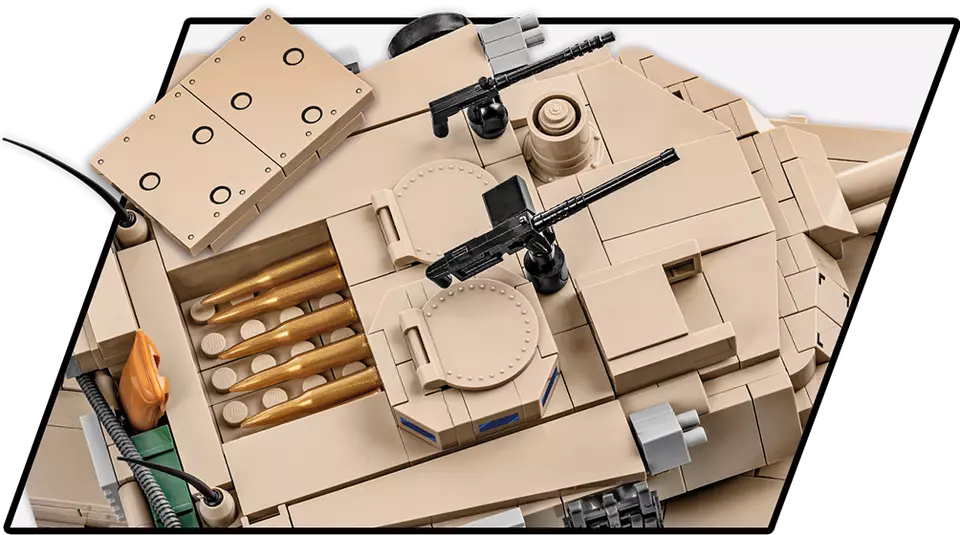 Abrams is one of the best tanks of the modern battlefield! It has been produced since 1980 by the American defense company General Dynamics Land Systems. The tank is constantly being modified to meet new standards that increase its combat value. A characteristic feature of the tank is the turret, which takes up almost as much space as the rest of the tank. In its design, the Abrams boasts multi-layer armor, which provides a high level of protection against HEAT rounds. Abrams tanks were first used in combat in the early 1990s during Operation Desert Storm. Since then, Abrams have been involved in successive military conflicts involving the United States. This set recreates its appearance in the Second Gulf War in 2003.