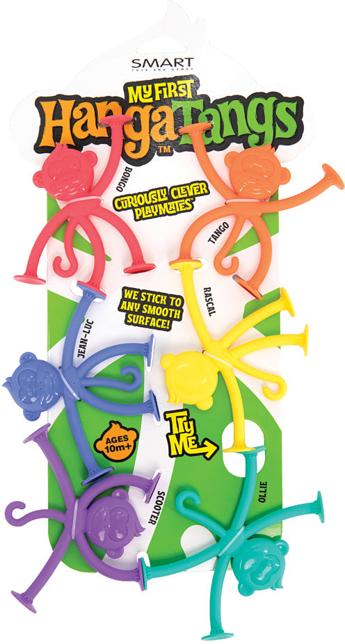 Babies go bananas for these monkey-shaped teethers! Each pack comes with 6 colorful HangaTangs made of textured food-grade silicone. Their hands and feet have suction cups - stick them to surfaces or link them together! We love the versatile play opportunities on high chairs, strollers, in the tub or the car.
