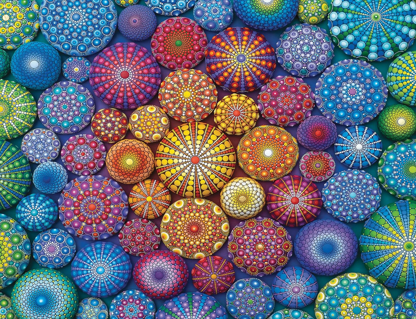 - [About This 2000pc Puzzle] Marvel at the wonder of nature’s beauty transferred onto stone in our “Radiant Rainbow Mandalas” puzzle!
