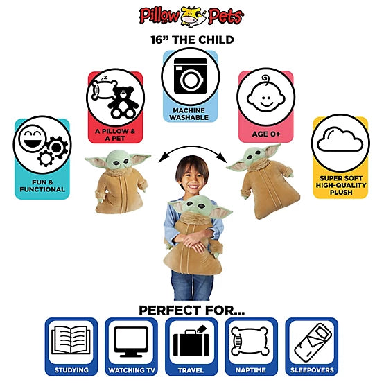 - Everyone's favorite baby from the popular Mandalorian series is now a cute Pillow Pet, featuring the Child's iconic big eyes and adorable Yoda like features